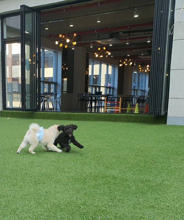 사랑하는 반려견이 신나게 뛰어놀 수 있는 공간이며 예뻐지는공간, 애견동반 미용/카페입니다